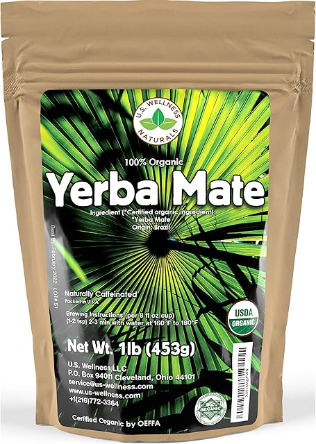 U.S. Wellness Naturals Yerba Mate Tea 1LB (16Oz) Organic HI-CAFFEINE | SUPER-GREEN | NO Dust | FRESH – NEVER Aged | Brazilian Rain Forest | 100% CERTIFIED Organic | Ilex Paraguariensis