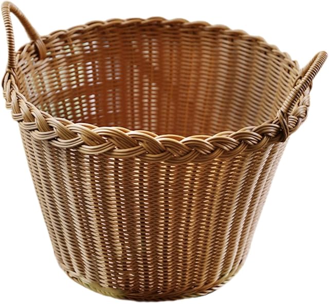 Unomor Japanese Style Simulated Rattan Laundry Basket with Handle Portable Dirty Clothes Storage Hamper for Home Use Lightweight Woven Design with Smooth Surface and Comfortable Grip