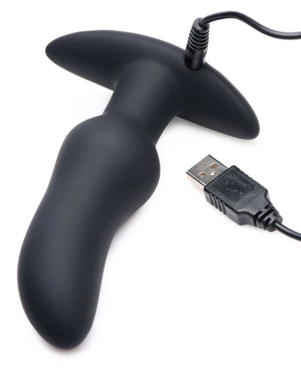 This vibrating plug is perfectly shaped for peak prostate pleasure – slightly curved with a mild bulb to directly stimulate the male P-spot while providing a satisfying fill for you to squeeze on. Choose from 10 patterns of vibration to voice your love into the ass of your man!