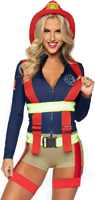 Order womens 2 Pc Hot Zone Firefighter Costume With Romper, Reflective Garter Suspenders today for a best price.