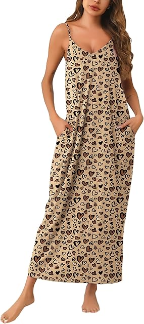 Order Womens Cotton Long Nightgowns Spaghetti Strap V Neck Full Slip Sleep Shirts with Pockets today for a best price.