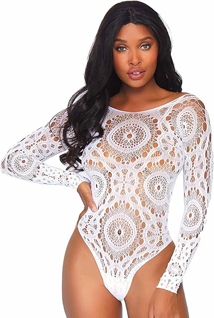 Order womens Crochet Lace Long Sleeve Thong Back Teddy today for a best price.