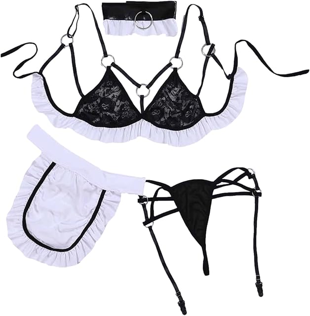 Womens French Maid Cosplay Costume Sexy French Maid Lingerie Role Play Uniform Naughty Maid Lingerie Set Lace Clubwear