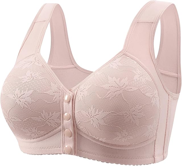 Womens Front Closure Button Underwear Bra Sexy Daisy Bras Lace Embroidery Lingerie Brassiere for Older Women