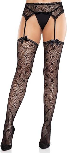 Order Womens Heart Lace Trimmed Heart Net Stockings With Attached Garter Belt and Satin Bow Accents today for a best price.