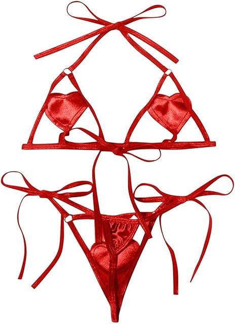 Order Womens Heart Mesh Sheer Lingerie Set Mini Top Tie Sides Thong Sexy Micro Swimwear Bikini Set today for a best price.