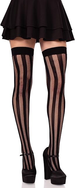 Order Womens Krya Striped Thigh Highs for Women Vertical Striped Stockings for Women Sexy Thigh Highs Fishnets, Black, One Size today for a best price.