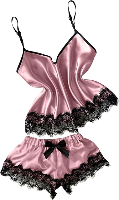 Womens Lace Satin Pajamas Set Sexy Camisole Tops Shorts 2 Piece Lingerie Sets Soft Comfy Sleepwear Ladies Loungewear