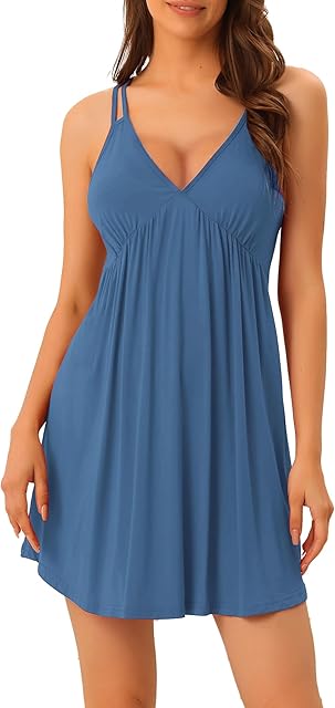 Order Womens Lingerie Sexy Nighties Pajama Mini Dress Soft Racer Back Full Slip Babydoll Chemise Nightgowns Large Blue today for a best price.
