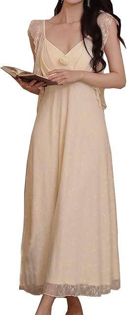 Womens Nightgown Lace Nightwear Victorian Loungewear Pajamas Chemises Long Sleepdress Nightshirt Lingerie