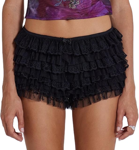 Womens Ruffle Lace Bloomers Cute Lolita Floral Mesh Layered Shorts Y2k Sexy Micro Bottoms Fairy Pettipants