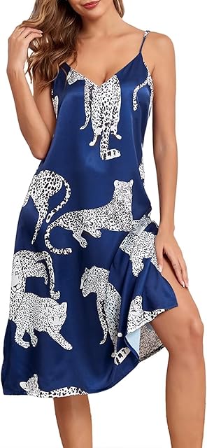 Order Womens Satin Nightgown Sexy Spaghetti Straps Long Silk Nightgowns Animal Printed Nighty Sleepwear Dress today for a best price.