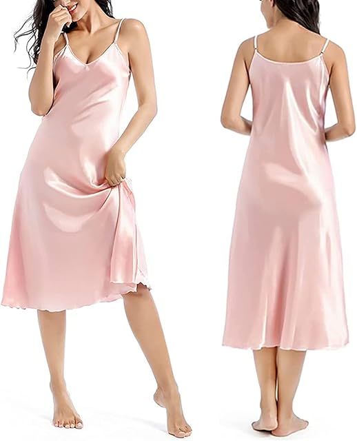 Womens Satin Nightgown Silk Slip Dress Sleepwear Sexy V Neck Negligee Lingerie Long Nightwear