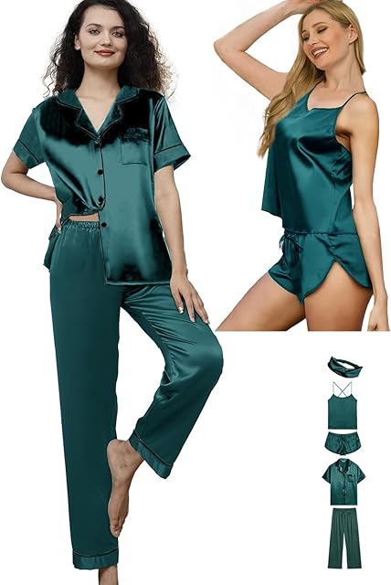 Order Womens Satin Silk 5Pcs Set Pajamas Sexy Cami Sets Silky Pajama Sets Sleepwear Lingerie Nightwear Pjs Loungewear today for a best price.