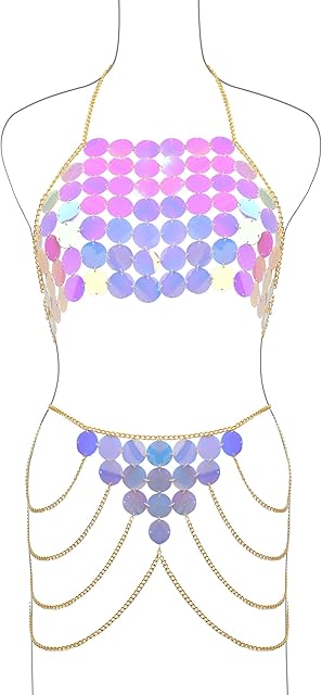 Womens Sexy Body Chains Suit Two Piece Sequins Bikini Beach Club Body Jewelry