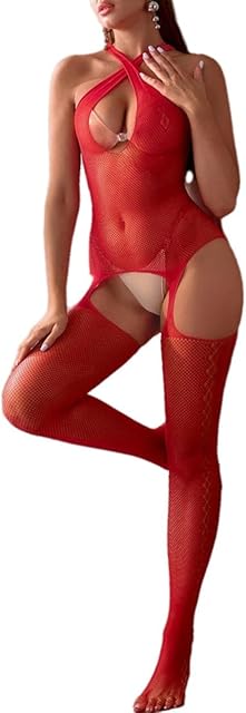Womens Sexy Fishnet Bodycon Tights Jumpsuit Lingerie Stretchy Halter Bodysuit Mesh BobyStocking