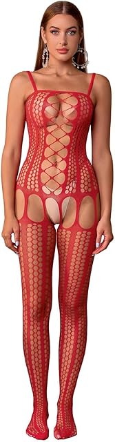 Womens Sexy Fishnet Crotchless Bodystocking Night Dress See Through Hollow Out One Piece Babydoll Basic Underwear