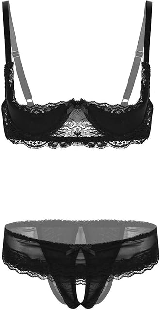 Women’s Sexy Lingerie Set Lace Floral Open Front Bra Top and Panty