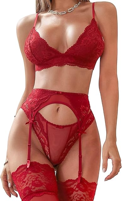 Order Women’s Sexy Lingerie Set with Garter Belt Stockings Matching bra and Panty Lace Bralette Wirelesss 4 Piece today for a best price.