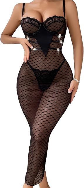 Order Women’s Sexy Lingerie Set,Women’s Sheer Lace Lingerie Bodystocking, Love DecorationBlack today for a best price.