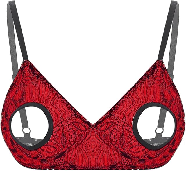 Women’s Sexy Lingerie Sheer Mesh Hollow Out Open Nipples Wireless Unlined Bra Tops Bralette