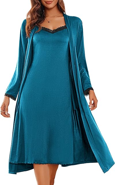 Order Women’s Sexy Nightgown with Robes Set 2 Piece Lace Full Length Knit Soft Nightwear Lightweight Bathrobes S-XXL today for a best price.