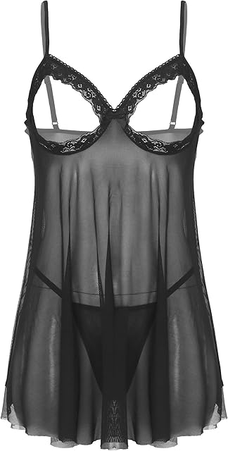 Women’s Sexy Plus Size Lingerie Split Cup Lace Babydoll Sleepwear Chemise Nightdress