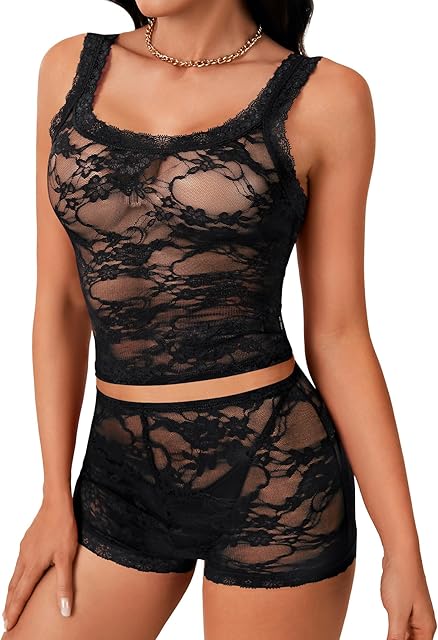 Order Women’s Sexy Sheer Floral Lace Pajamas Lingerie Set High Waist Sleepwear Bra and Panty 2 Piece Nightwear today for a best price.