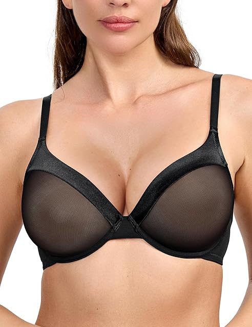Women’s Sexy Sheer Lace Bra Demi See Through Mesh Bralette Unlined Underwire Support Non Padded