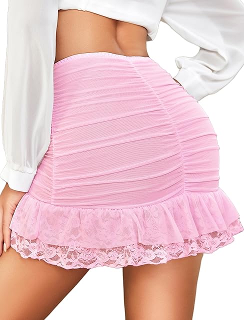 Women’s Sexy Skirt Ruched Bodycon Double Layer Casual Mini Skirt