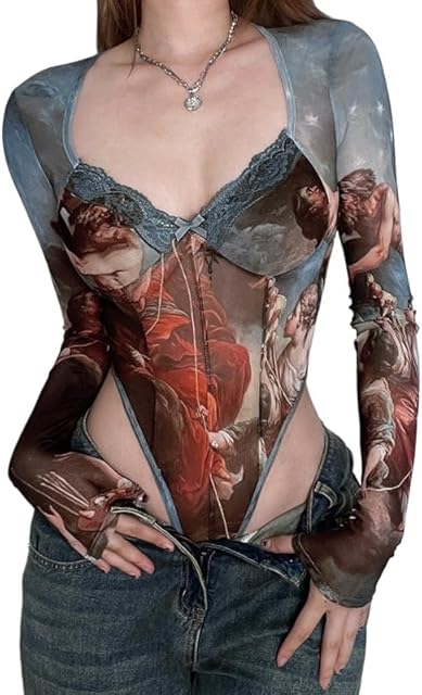 Order Women’s Sheer Mesh Long Sleeve Bodysuit Tops Sexy See Through Lingerie Leotards Vintage Lingerie for Women today for a best price.