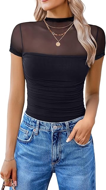 Order Women’s Short Sleeve Bodysuit Turtle Neck Body Suits Mesh One Piece Leotard Going Out Tops Date Outfits today for a best price.