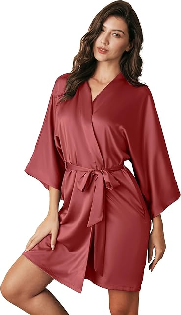 Order Women’s Silk Robe Satin Kimono Robe for Bride Bridesmaids Short Bridal Party Robes Wedding Loungewear XS-XXL today for a best price.