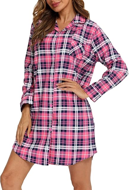Order Women’s Sleep Shirt Flannel Print Pajama Top Button-Front Nightshirt Sleepwear today for a best price.