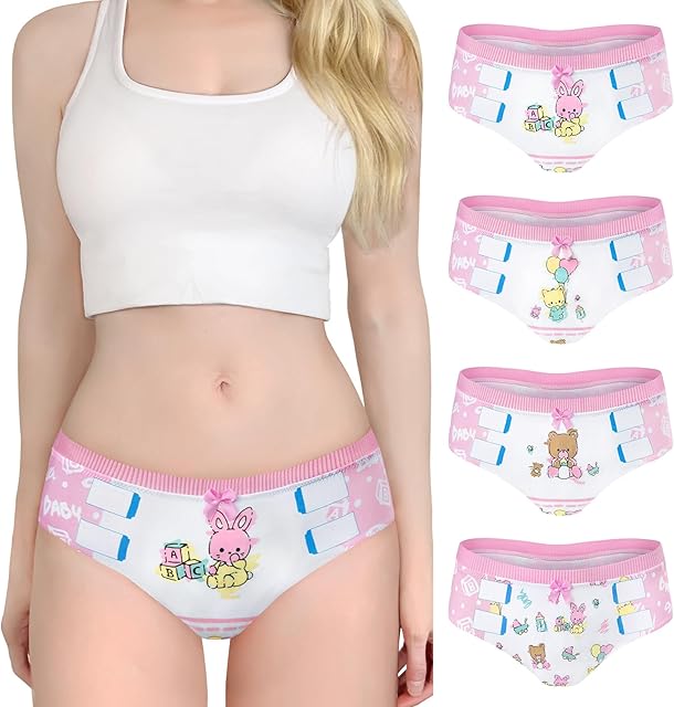 Women’s Soft Cotton Hipster Briefs Babydoll Baby Cuties Oopsie Potty Pants 4 Pack Panties Set