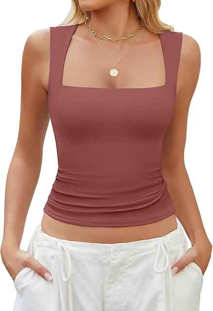 Women’s Square Neck Tank Top Double Lined Basic Crop Tops Going Out Shirt Slim Fit Summer