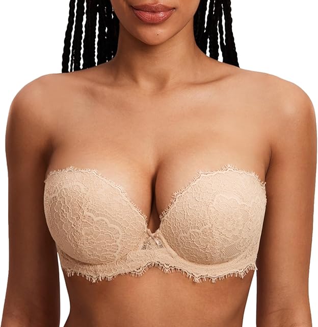 Order Women’s Strapless Push Up Bra Lace Plus Size Plunge Padded Underwire Bras Add 1 Cup today for a best price.
