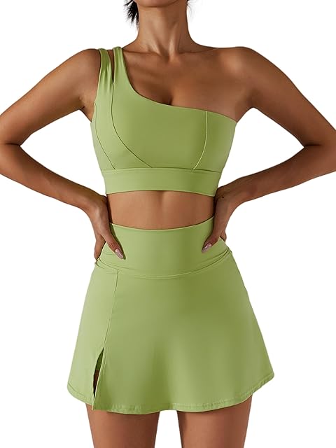 Order Women’s Tennis Skirts Sport Bra Sets High Waisted Golf Skorts Skirt One Shoulder Sports Bra Running Workout Activewear today for a best price.