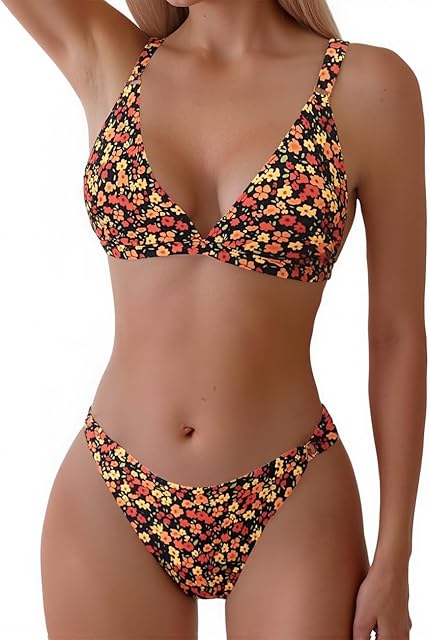 Order Women’s Two Piece Floral Print Swimsuits Triangle Top Sexy Bikini Sets Low Waist Cheeky Bathing Suit today for a best price.