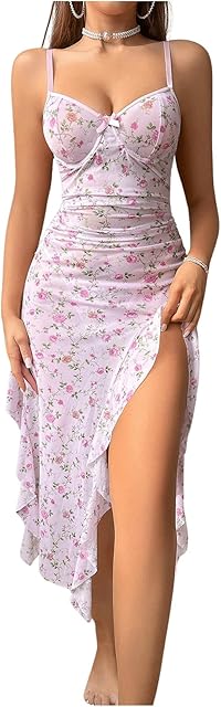 Order Women’s Two Piece Lingerie Set Floral Ruffle V Neck Split Thigh Babydoll Teddy Chemise Nightgowns Sleepwear today for a best price.