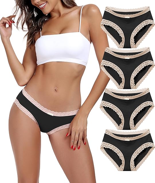 Womens Underwear Lace Trim Hipster Panties Pack Soft Moisture Wicking Cotton Bikini Briefs Cool Undies Underpants
