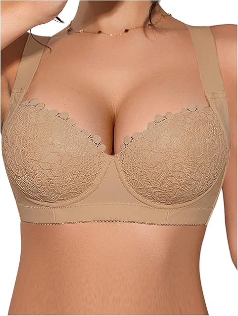 Order Women’s Underwire Adjustable Push Up Sexy Elegant Lace Bra Soft with Wide Strap Shaping Support Lingerie Khaki 34A today for a best price.