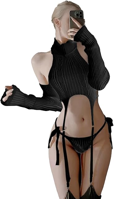 Order Women’s White Knit Sweater Lingerie Set Halter Crop Top with Garter Design, Sexy Cosplay Outfit today for a best price.