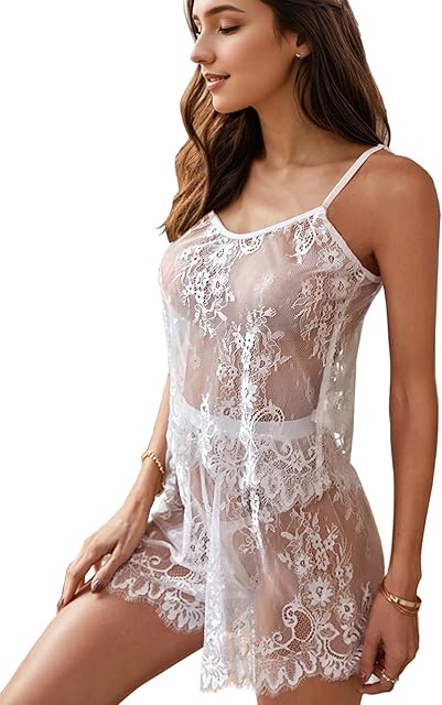 Order Women’s White Sexy Lace Bridal Lingerie Set,Wedding Night Honeymoon Sheer See Through Sleeveless Pajamas Set today for a best price.