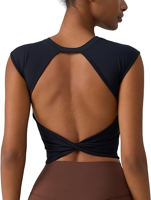 Order Women’s Workout Athletic Shirts Sexy Open Back Sports Bra Tank Top Casual Tight T Shirts with Built in Bra today for a best price.