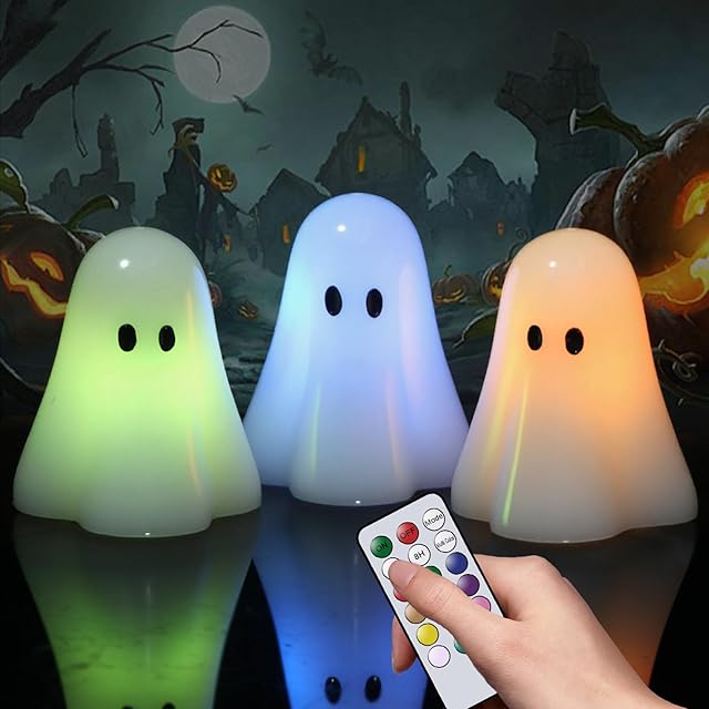 Order Wondise Halloween Flameless Candles Color Changing with Remote Timer, Real Wax Battery Operated Flickering Halloween Spooky Ghost Candles for Halloween Decoration Gift (D 3″ x H 3.5″) today for a best price.