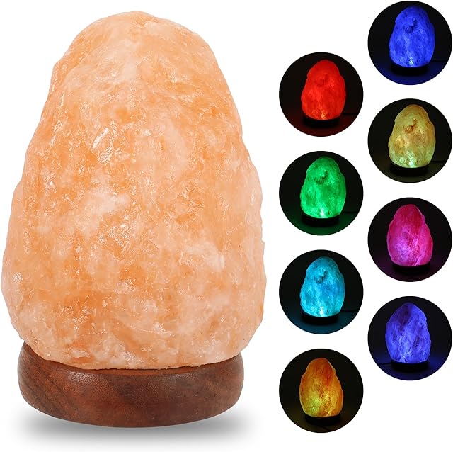 Wrcevtor Natural Salt Rock Night Lamp 7 Colors Changing Mini Crystal Salt Lamp