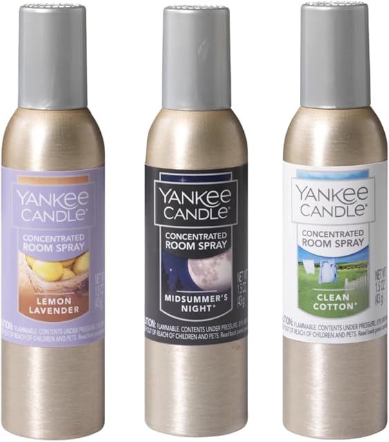 Yankee Candle Concentrated Room Sprays – Clean Cotton, Lemon Lavender, MidSummer’s Night