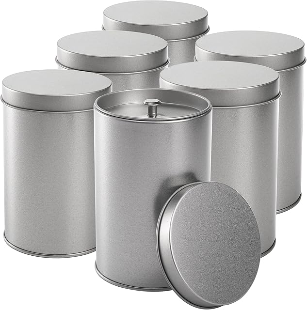 Order Yesland 6 Pack Tea Tin Canister with Airtight Double Lids, 12 Fluid Oz Tin Can Box and Small Round Kitchen Canisters for Loose Tea, Coffee, Candy, Herbs and Spices(Silver) today for a best price.