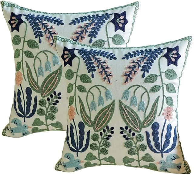 YIcabinet Pillow Covers Set of 2, Embroidered Branch Pattern Throw Pillow Cover,Square Cotton Cushion,Pillow Case for Sofa Bedroom Couch,18″x18″
